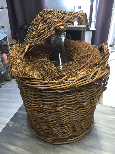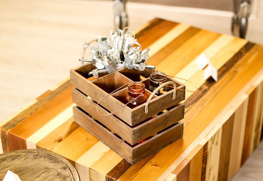 Table palette travaillée, casier à bouteilles et mini arrosoirs déco !