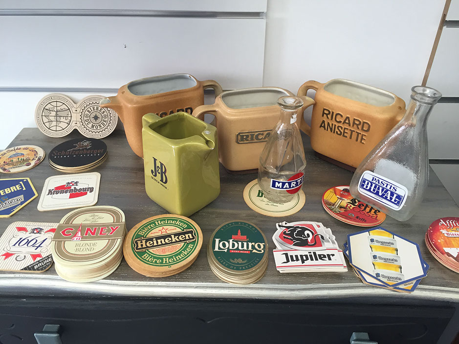 Cruches et bouteilles Casanis, Martini, Ricard...